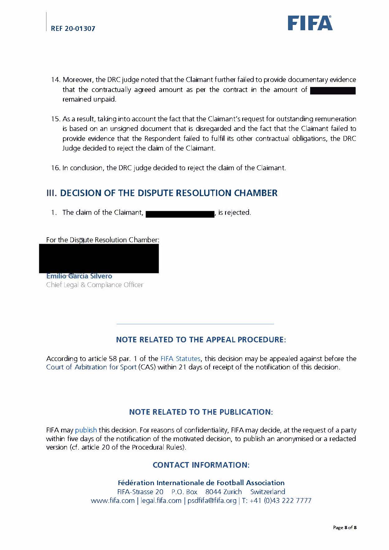 The case 20-01307 was lodged in FIFA DRC and concerned alleged article 12bis of FIFA RSTP with its edition effective at the moment of the dispute. Our principal was the football club. The merits of the case, inter alia, were about the topic well covered by the article published in Football Legal – essentialia negotii. The claimant submitted a document not signed by the club and attempted to claim outstanding payables upon it. Nevertheless, due to the burden of proof the DRC Judge came to the conclusion that the claimant didn’t overcome the threshold of burden of proof considering all the facts at hand. In result, the claim was entirely ejected and our club’s interests – remained protected.